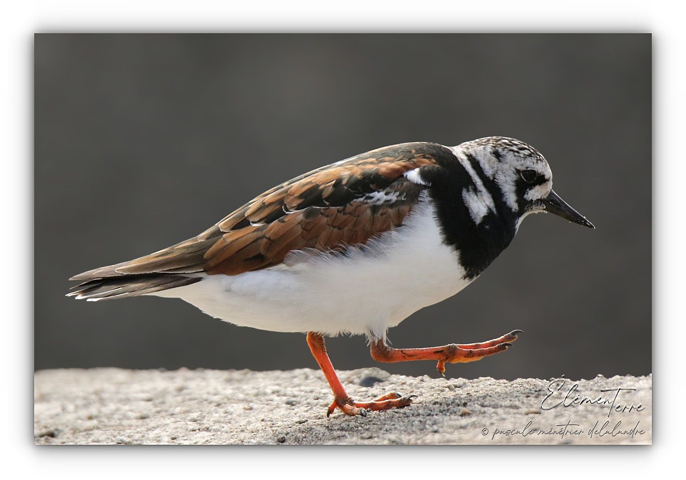 Trapu et court sur patte, le tournepierre à collier arbore au printemps un plumage différencié en fonction du sexe.