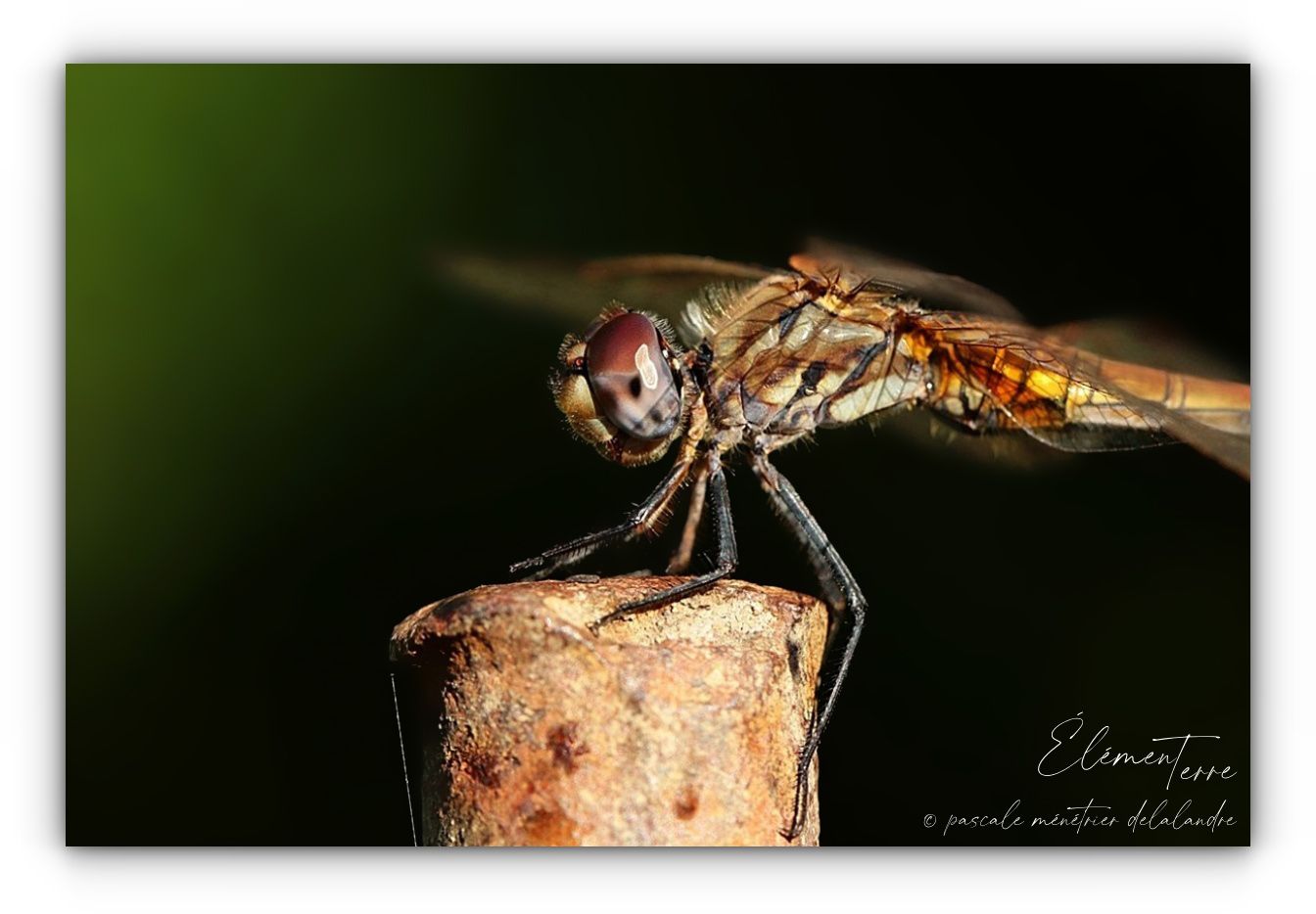 Diagnose : Les mâles sont de couleur rouge violacé avec une tache jaune à la base des ailes. Les femelles sont brun jaune. Les pattes sont noires. Les ptérostigmas sont de taille identique sur les 4 ailes.