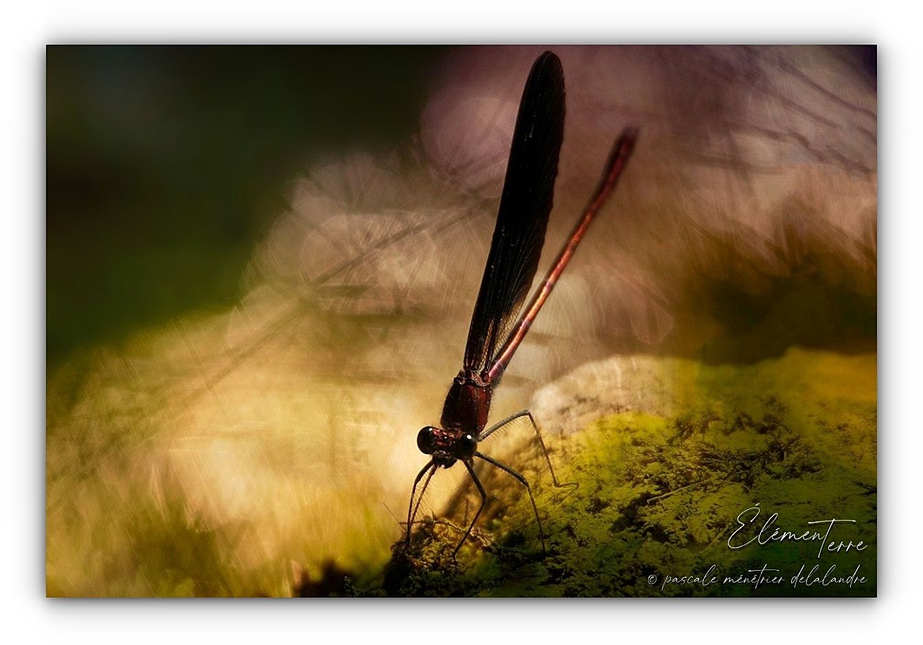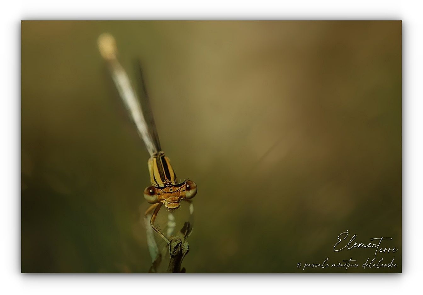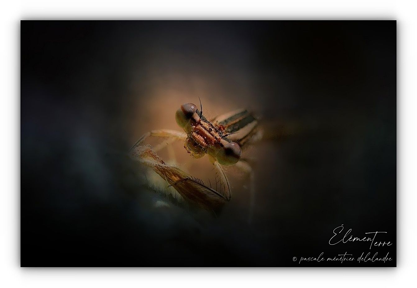 Bien que ces différentes Demoiselles soient identifiées, je n'ai pas réalisé ces photos dans un esprit de "document" entomologique. J'ai au contraire choisi de jouer avec les ombres et lumières et à pleine ouverture, donc avec les zones nettes sur les yeux et le reste du corps fondu dans l'environnement, comme pour de petits moments d'intimité partagés.