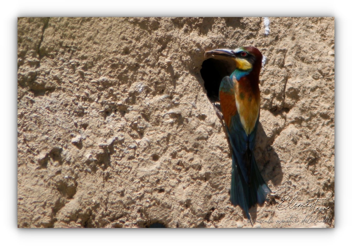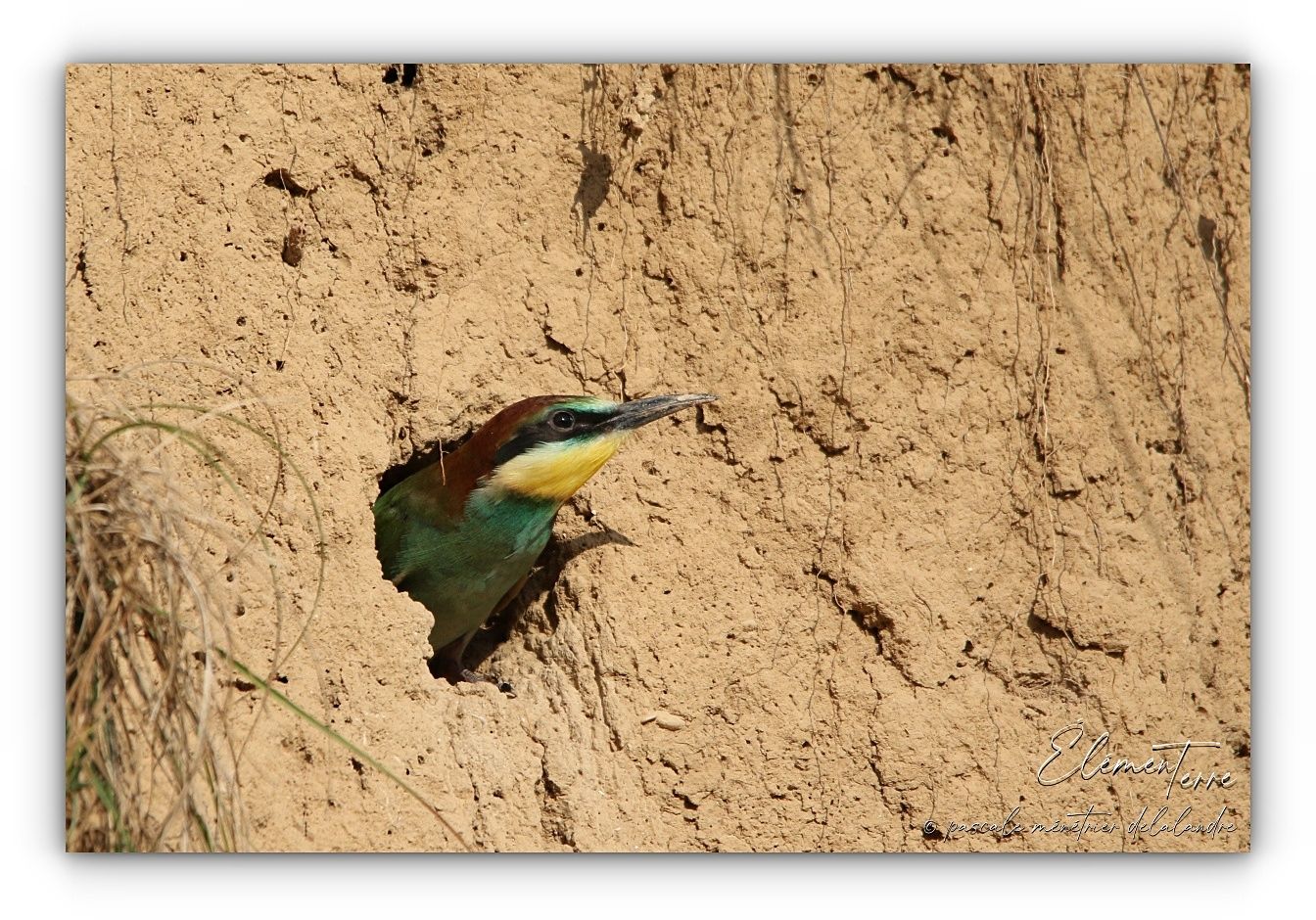 En France, le guêpier s’installe à proximité des cours d’eau dans des milieux assez ouverts mais contrairement à bon nombre d’oiseaux, il niche parfois au sol. Le plus souvent c'est dans des talus de terre meuble qu'ils soient naturels ou artificiels qu'il creuse son nid à l'aide de son bec et et de ses pattes, de sorte à offrir une cavité de 1 à 2 mètres de long. 10 à 12 kg de terre sont évacués du nid pour sa construction !