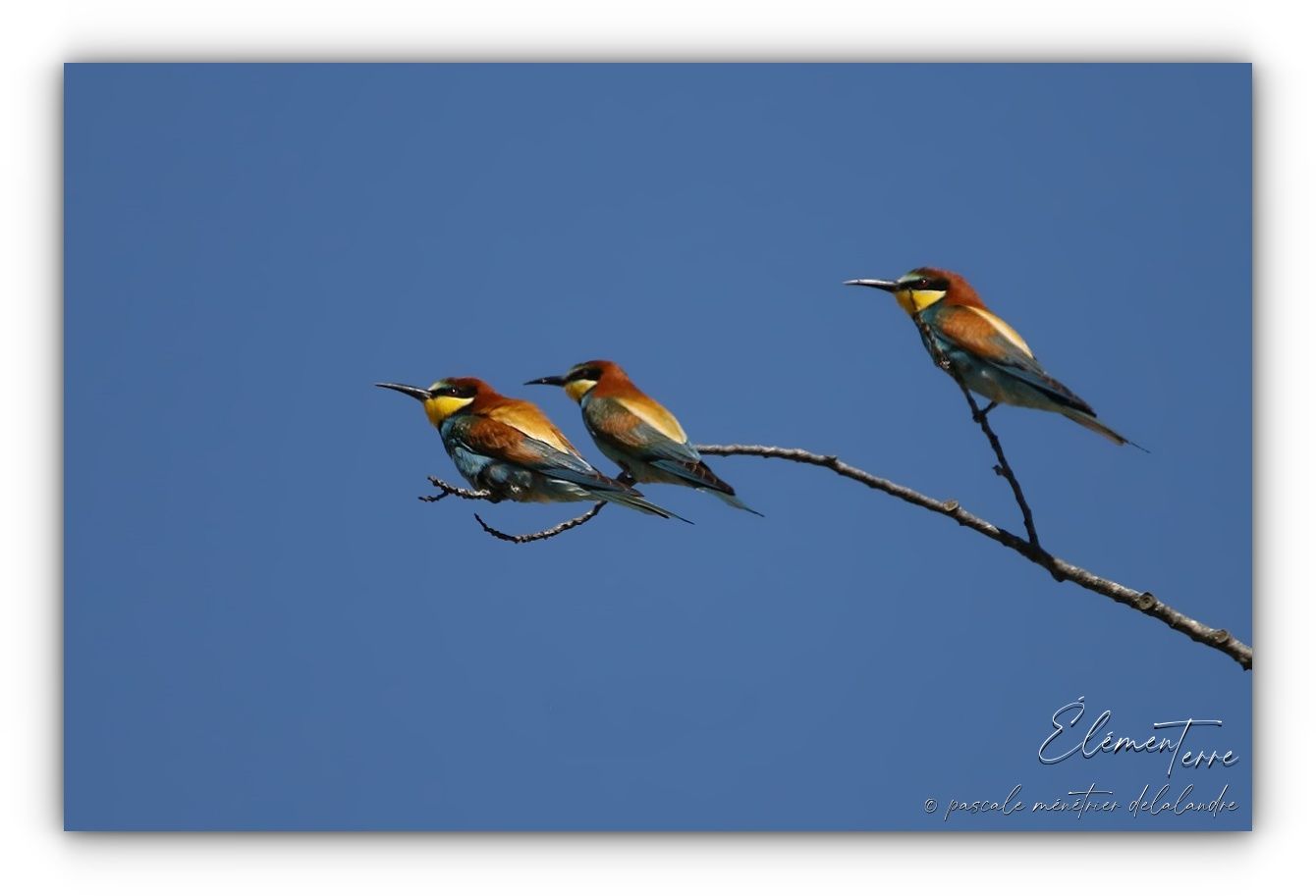Les Guêpiers d'Europe migrent en troupes, parfois nombreuses, et souvent haut dans le ciel.