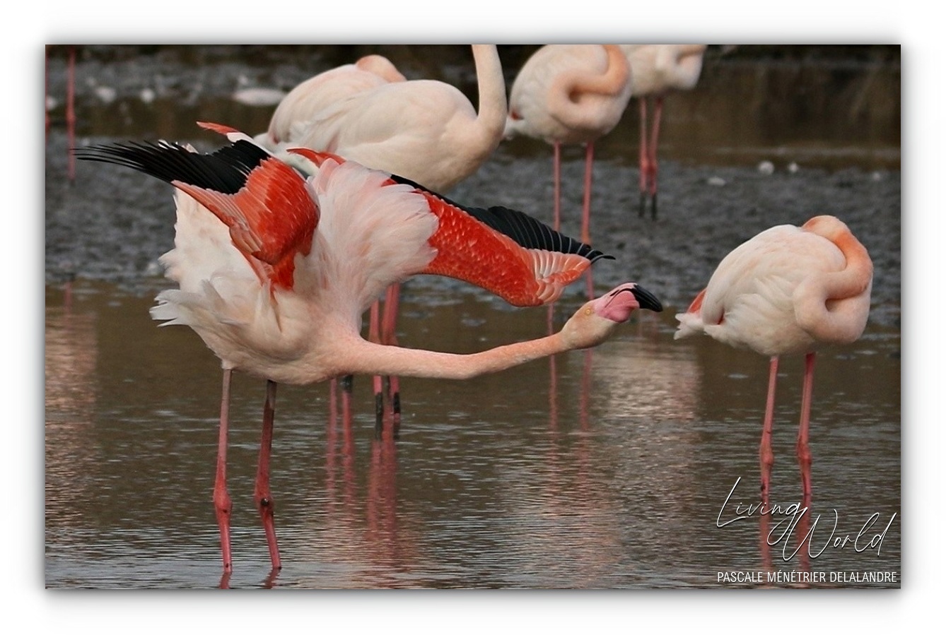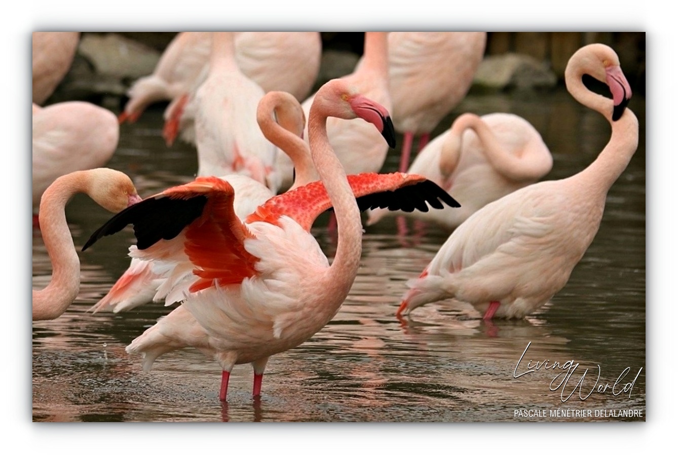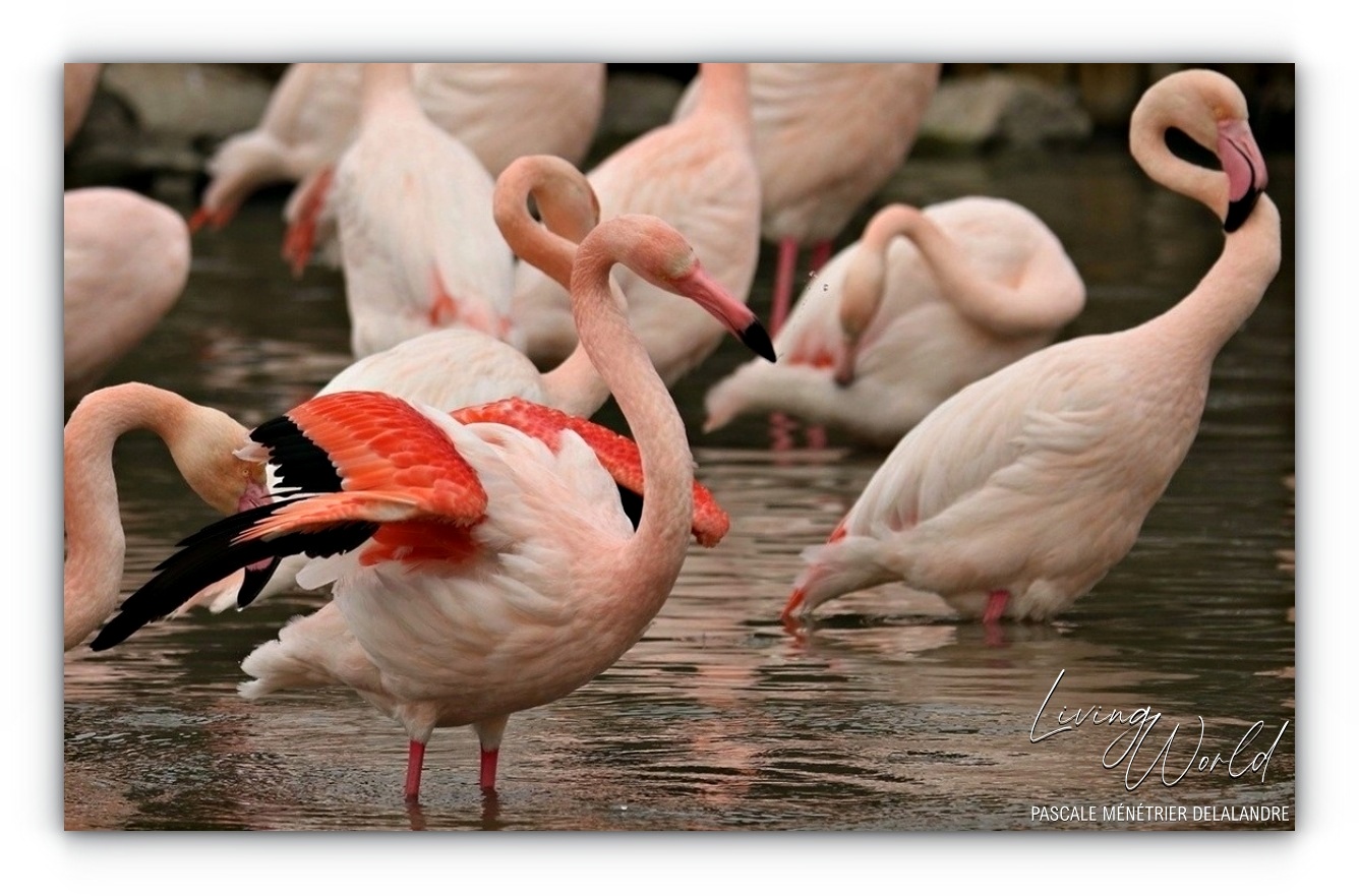 De juin à novembre les flamants muent et des plumes neuves apparaissent sur leurs corps pour ainsi dévoiler de magnifiques couleurs et se présenter dans leurs plus beaux atours pour la saison des amours.