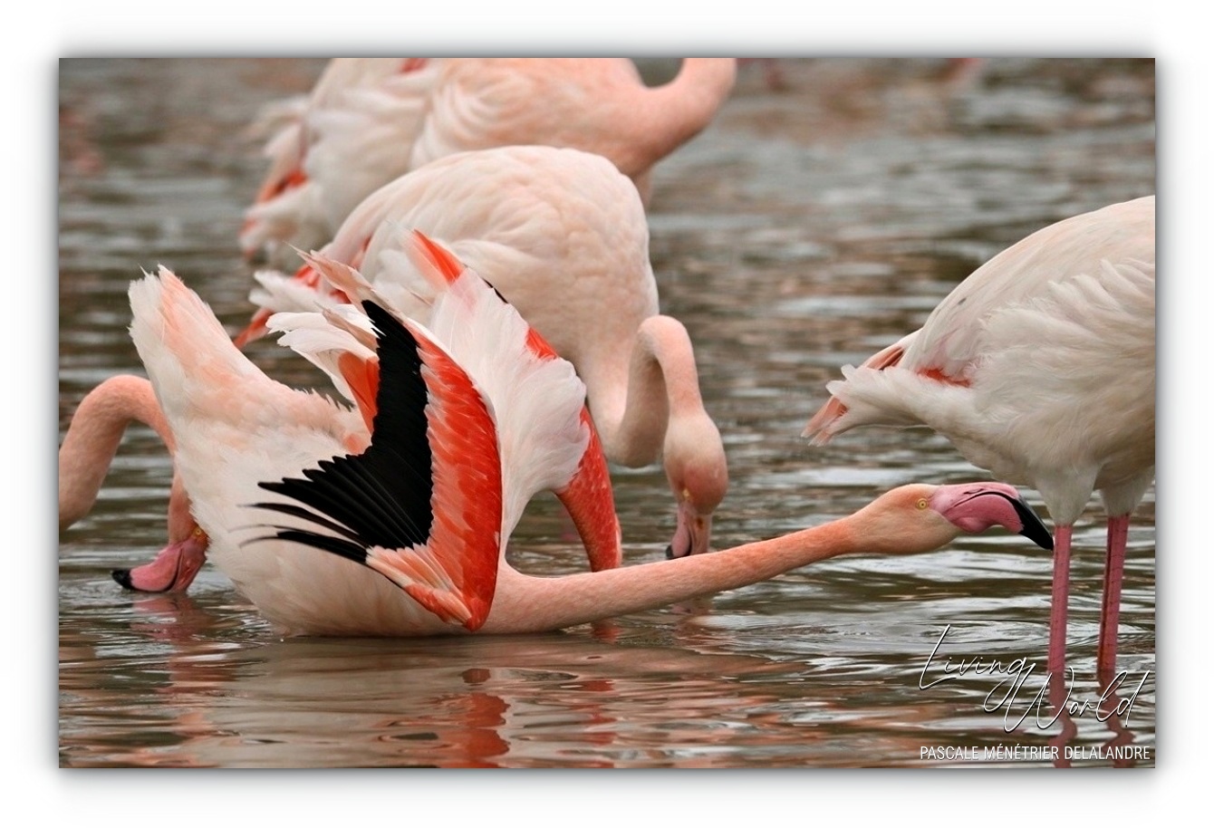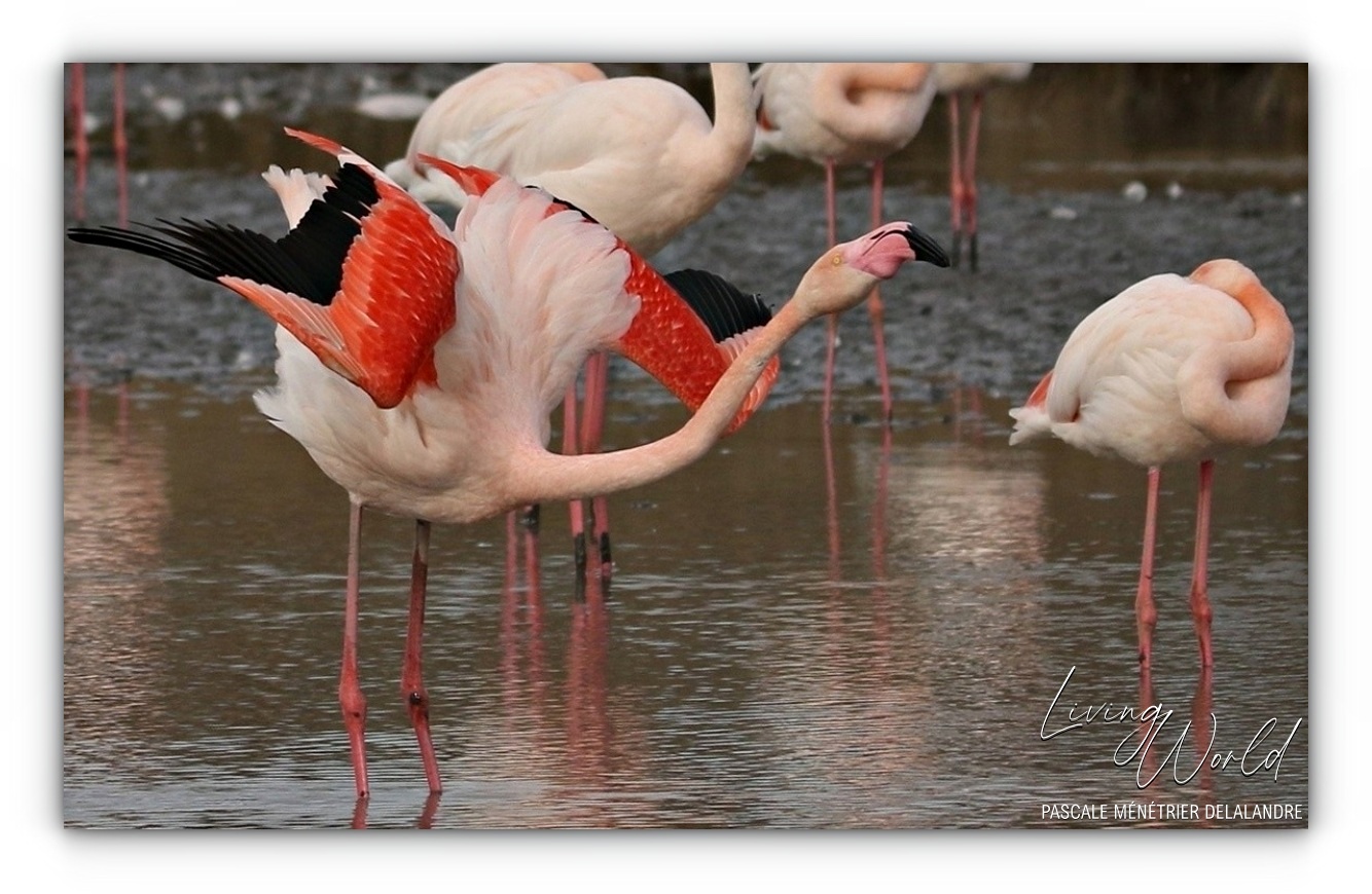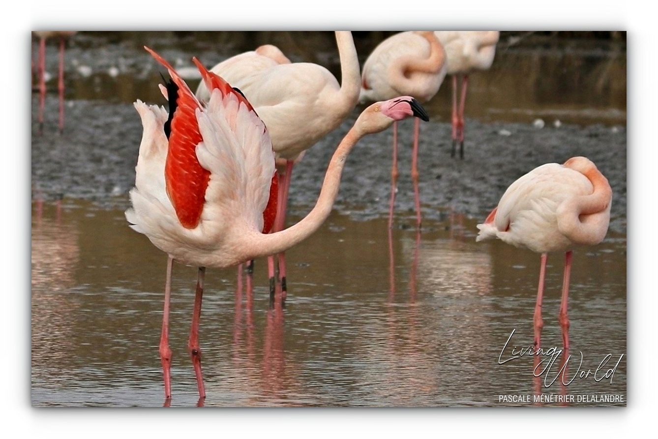 De juin à novembre les flamants muent et des plumes neuves apparaissent sur leurs corps pour ainsi dévoiler de magnifiques couleurs et se présenter dans leurs plus beaux atours pour la saison des amours.