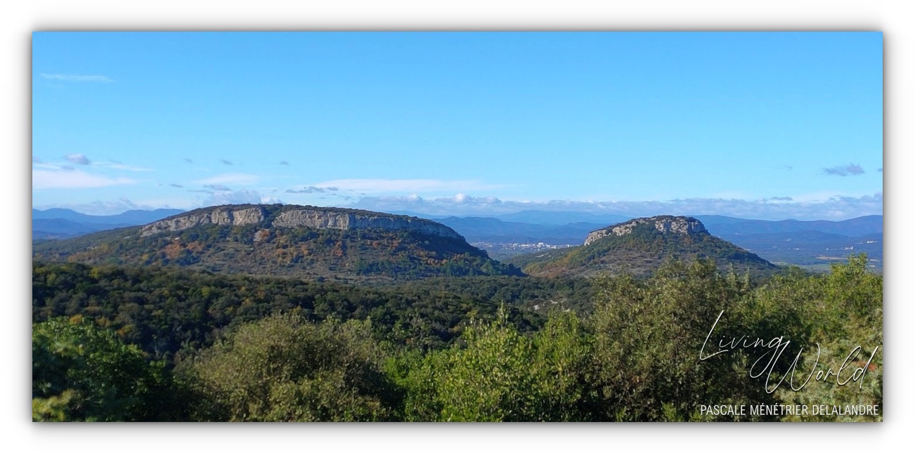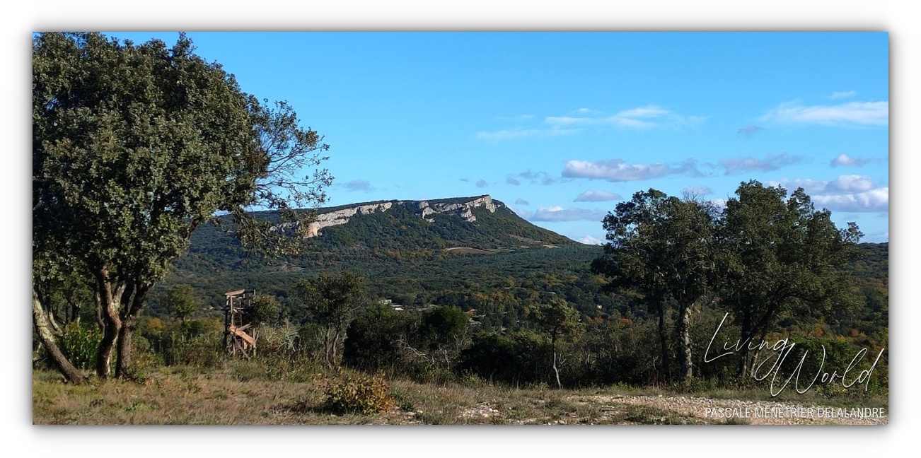 Le Hameau sous un autre angle. Au fond à gauche (juste à côté des feuilles en V), on aperçoit toujours le Mont-Lozère que l'on voit d'une de nos fenêtre.