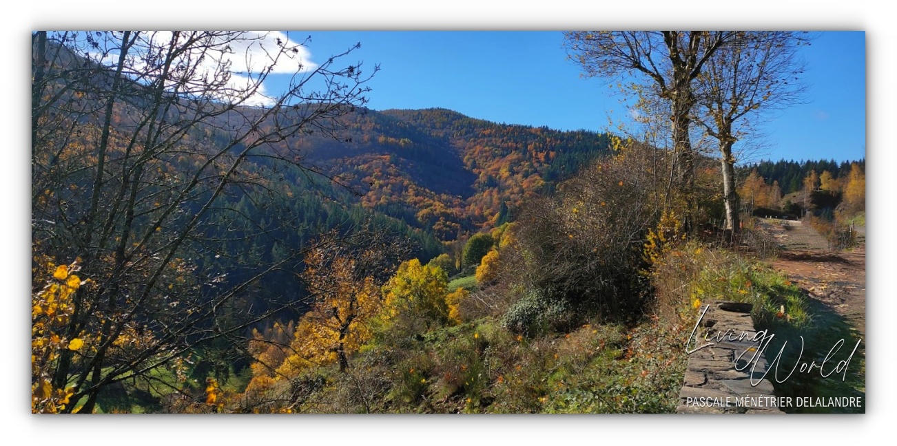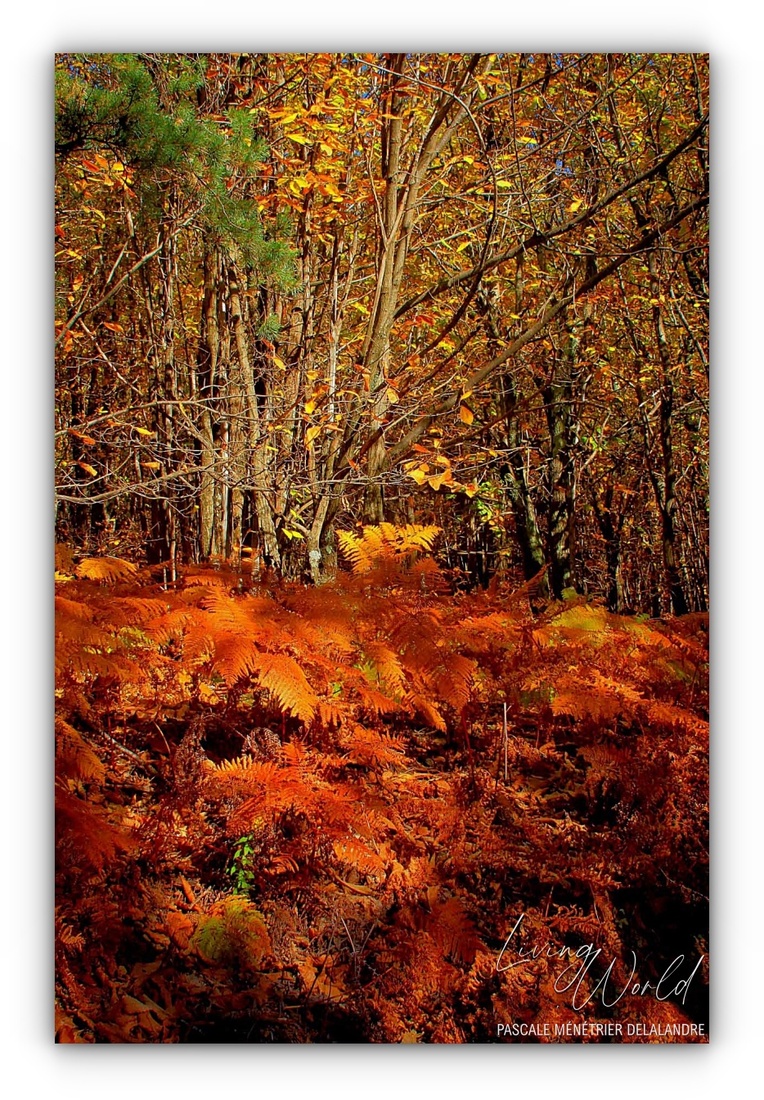 Les couleurs de la forêt autour du hameau avec beaucoup de fougères et de Bruyères selon les endroits.