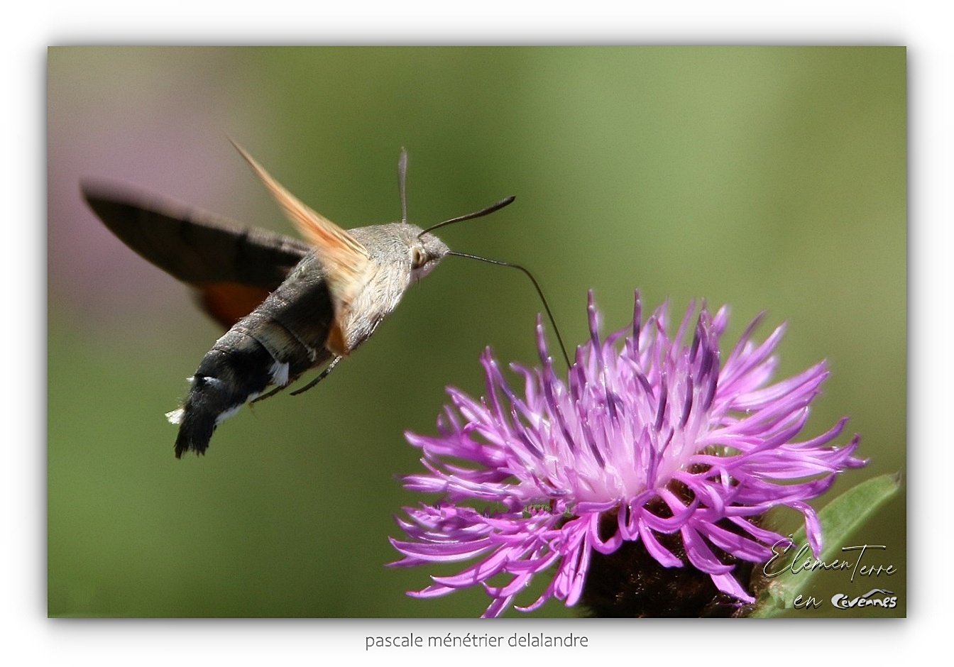 Le Moro-sphinx est souvent comparé à l’oiseau colibri en raison de sa capacité de vol stationnaire et de son battement d’aile rapide. En effet, pour butiner le nectar des fleurs en vol, le Moro-sphinx bat des ailes à une fréquence stupéfiante : 75 fois par seconde, ce qui lui fait dépenser énormément d’énergie. Il doit donc visiter un grand nombre de fleurs pour satisfaire ses besoins énergétiques.