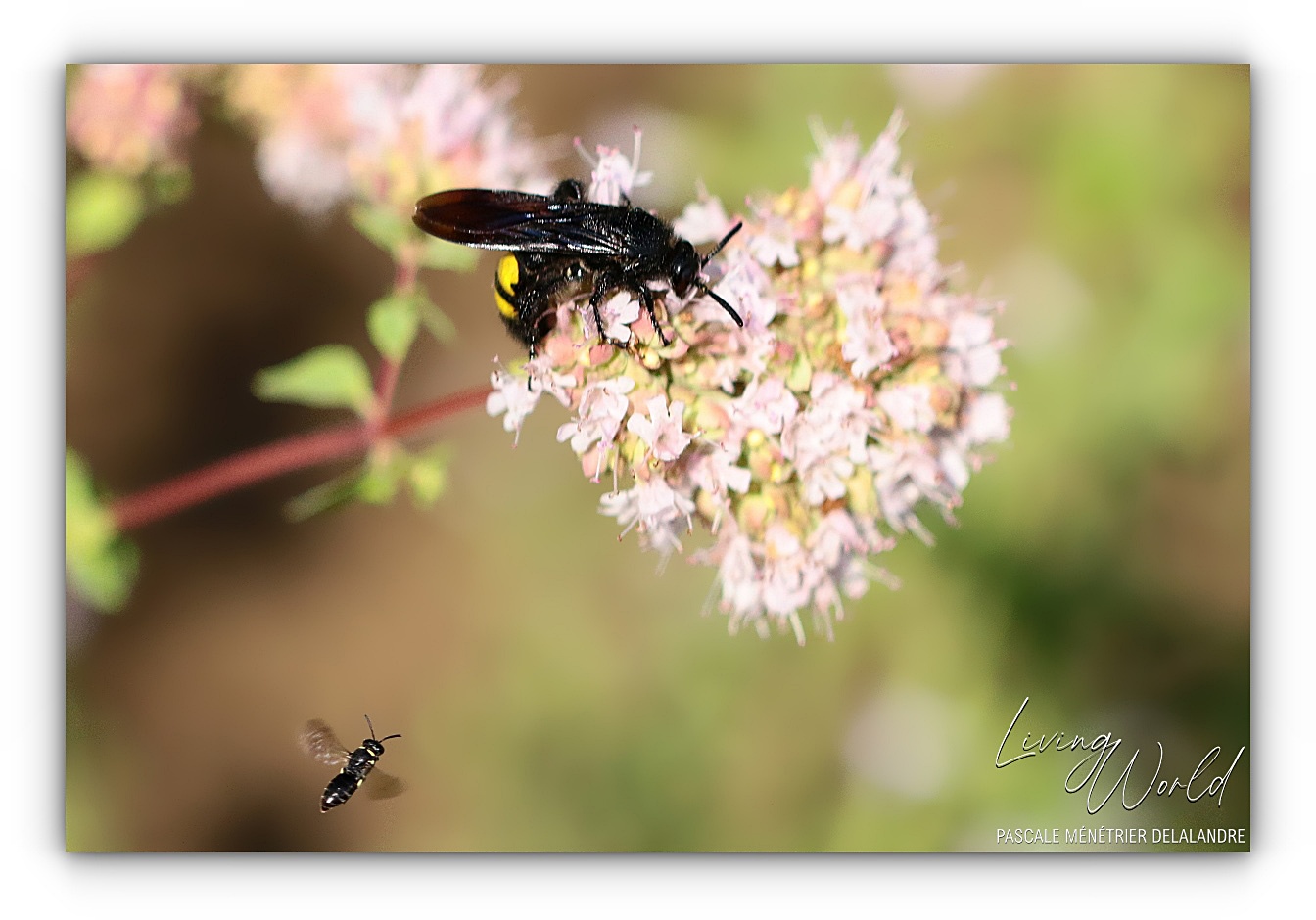 Sachant sur la Scolie mesure de 15 à 22mm, imaginez la taille de cette petite Abeille solitaire.
