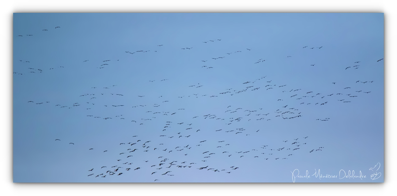 Nous avons eu le plaisir de voir plusieurs passages de Grues cendrées venant d'Espagne et remontant vers le nord.