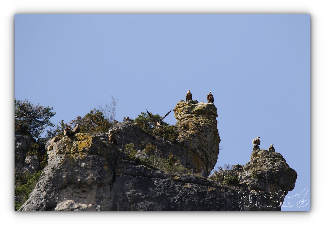 Du haut de leurs pitons rocheux, ils observent les Gorges, mais dans la journée, beaucoup partiront survoler les Grands Causses.